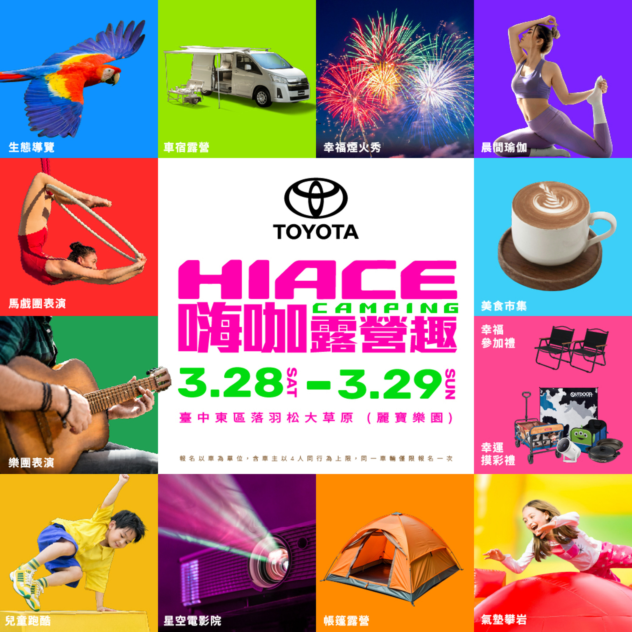 為感謝TOYOTA商旅車車主長期以來的熱烈支持,並持續深化車露文化的交流體驗,和泰汽車將於2026年3月28日(六)至3月29日(日),於台中麗寶樂園東區落羽松大草原,盛大舉辦