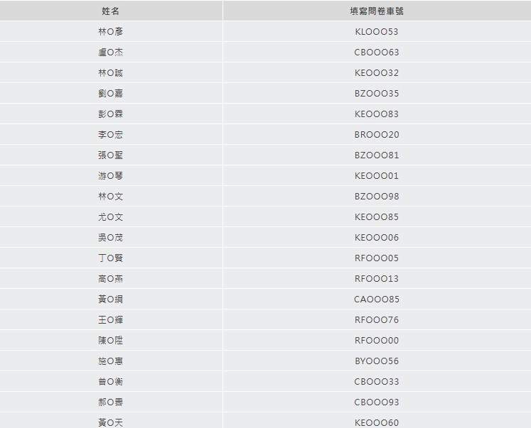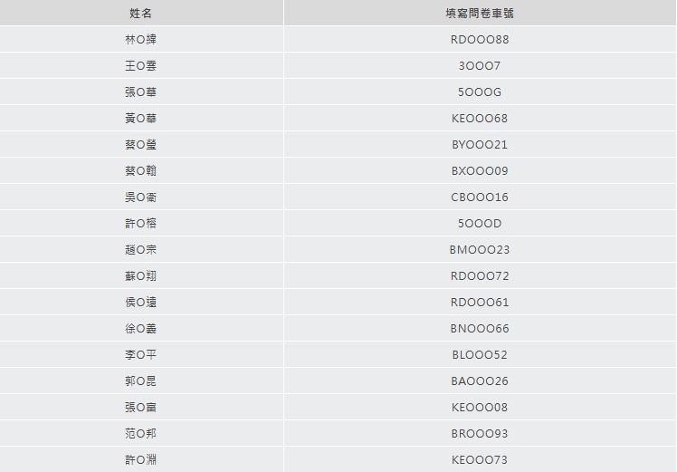 恭喜以上中獎人!