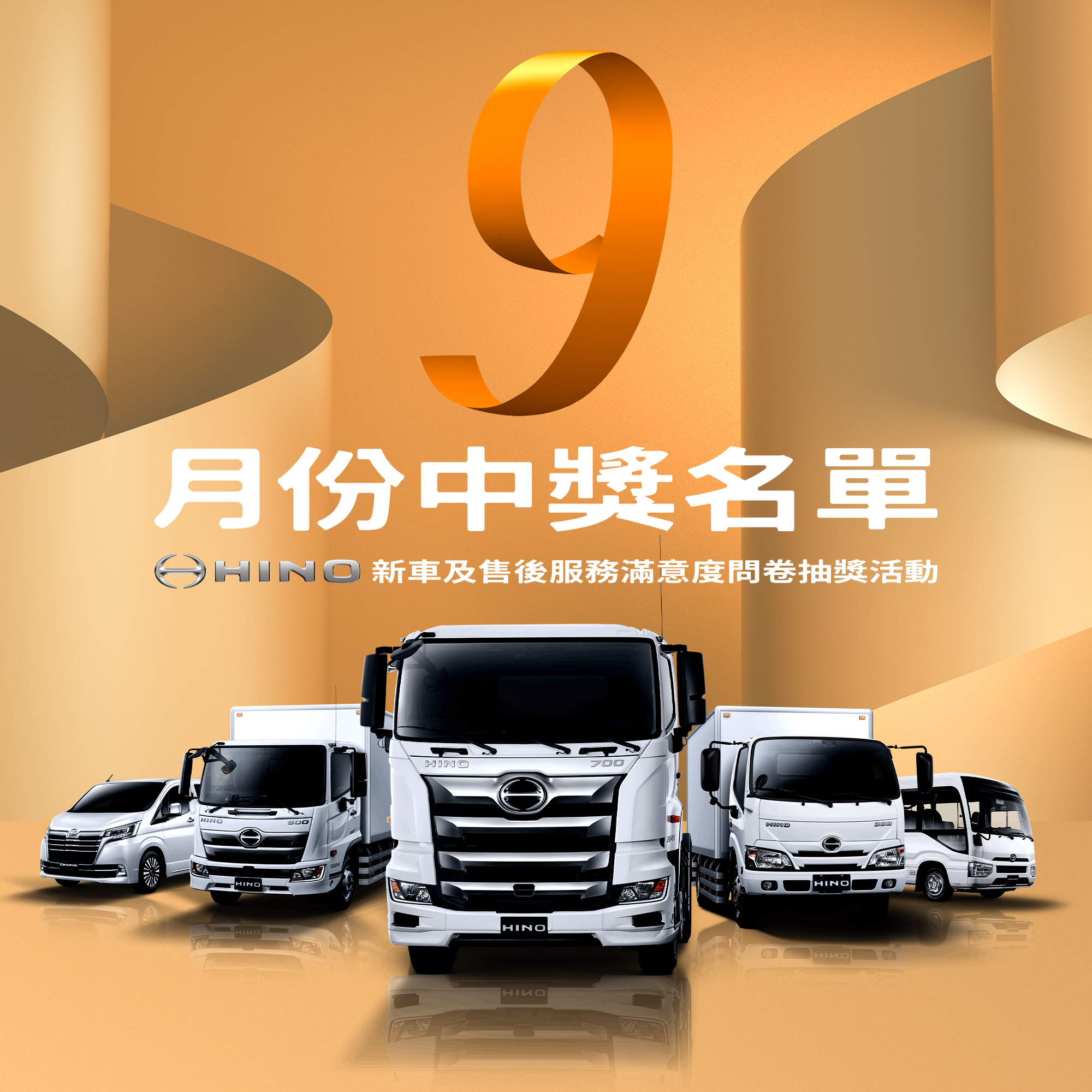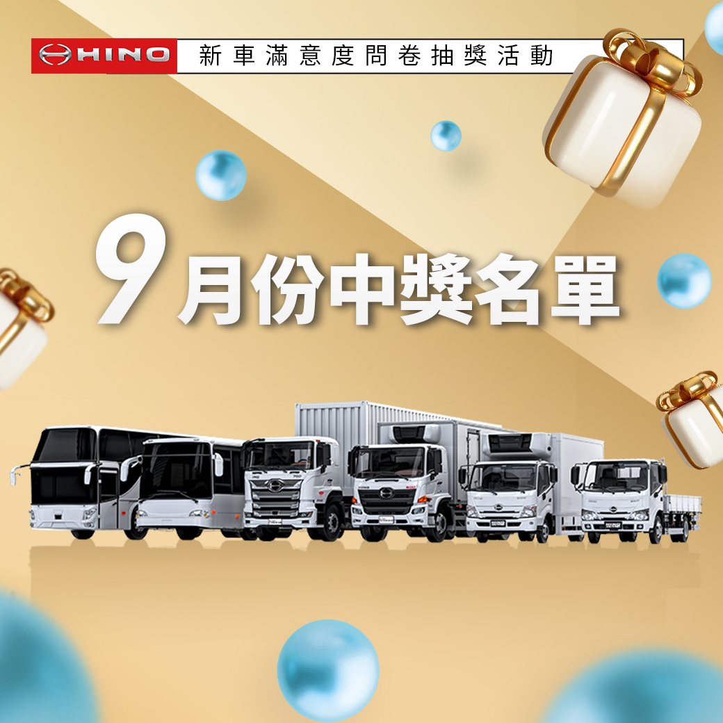 2022年9月TOYOTA&HINO商用車LINE@新車車主購車滿意度問卷中獎名單