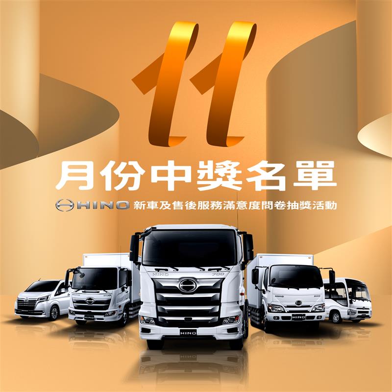 2022年11月TOYOTA&HINO商用車LINE@新車車主購車滿意度問卷中獎名單